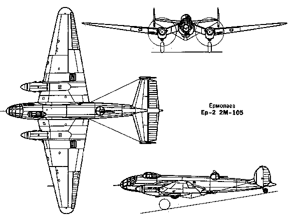построил 128 самолетов Ер-2 с двумя двигателями М-105 по 1050 л.с.