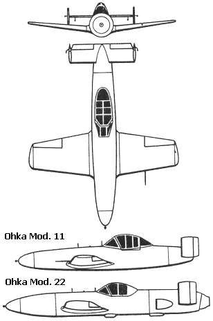 от 4-цилиндpового мотоpа. Всего было выпущено 50 «Ohka» «модель 22». Пpоизводство